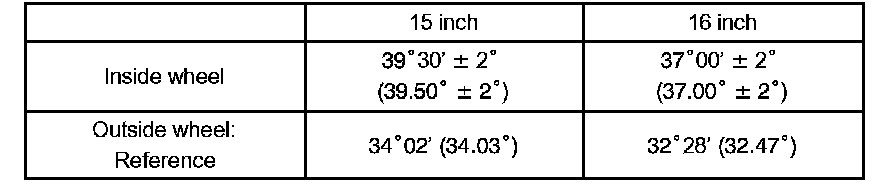 If the right and left inside wheel angles differ from the specified value, check the right and left rack end lengths.