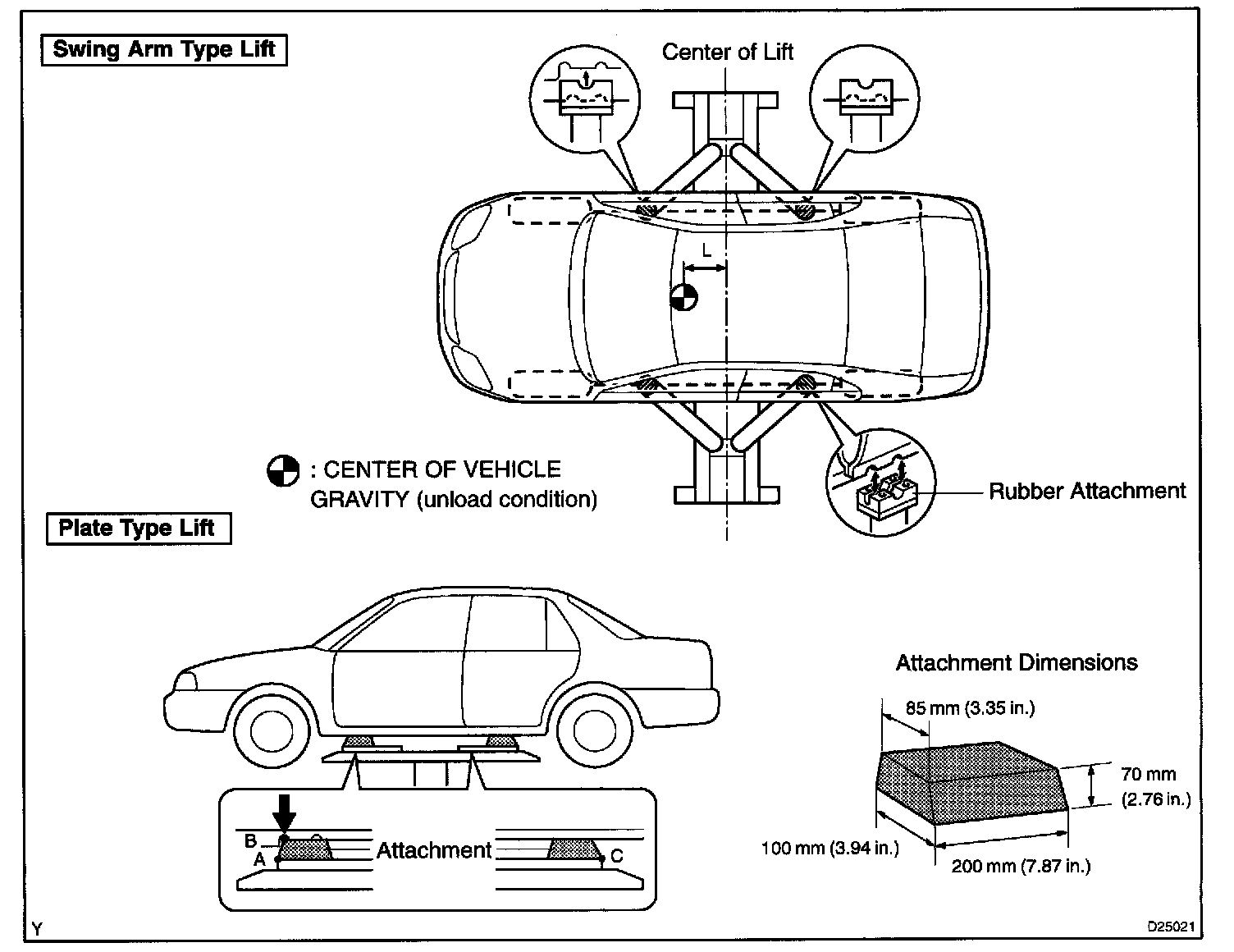 c. Set in the vehicle so as to make its center of gravity as close as possible to the center of the lift. ("L" becomes short.)