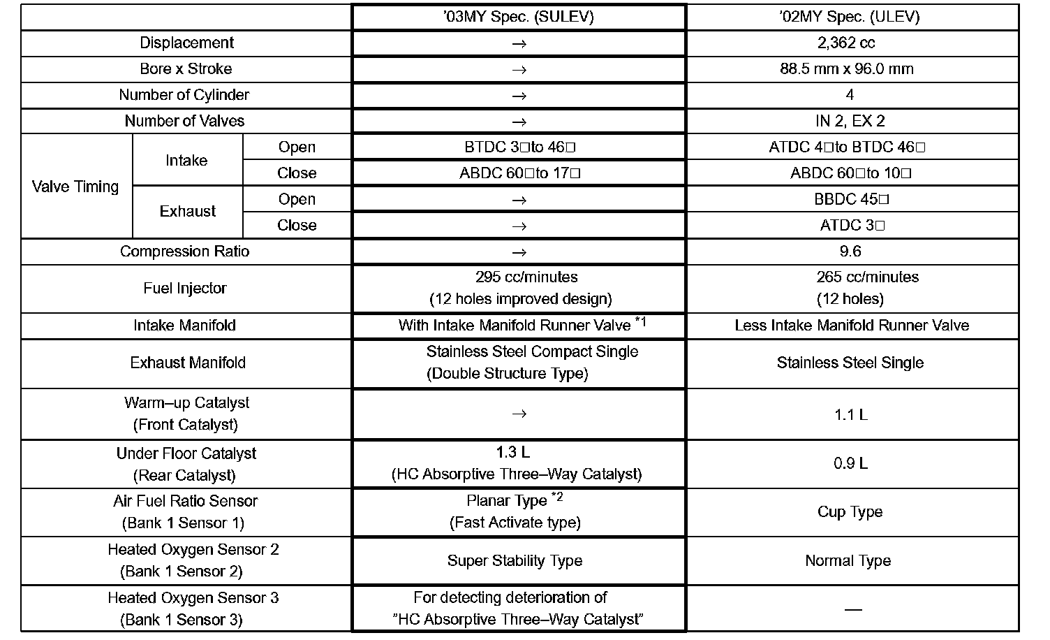 *2: The sensor element is a new, narrow, planar-type, replacing the previous cup-type design. The new design accelerates the activation of the A/F sensor.