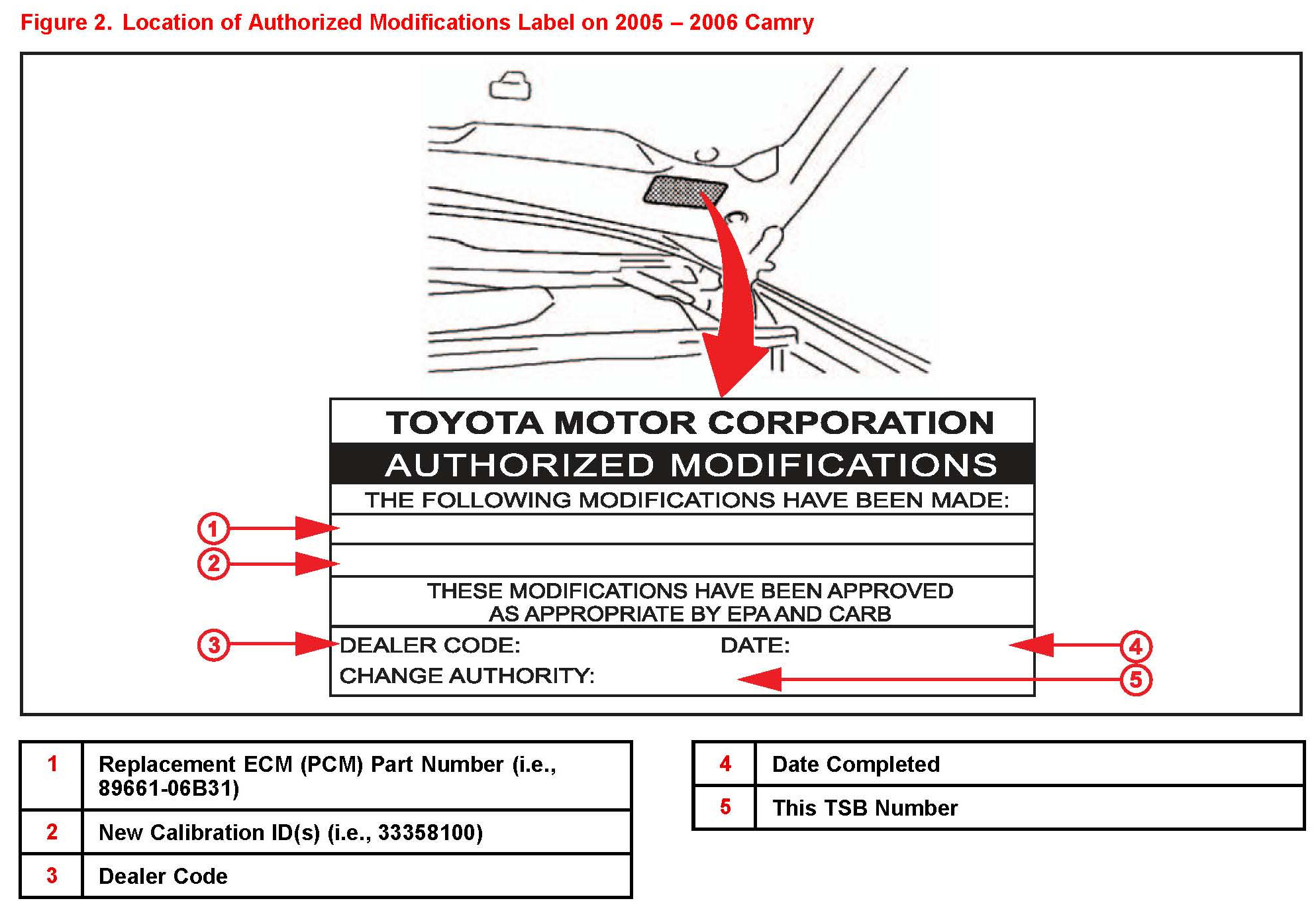 ^ For 2005 - 2006 Camry 4-cylinder models certified as PZEVs (Partial Zero Emission Vehicles) that are sold, registered, and operated in California, Connecticut, Maine, Massachusetts, New Hampshire, New Jersey, New York, Rhode Island, and Vermont, this repair is covered under the California Emissions Warranty. This warranty is in effect for 180 months or 150,000 miles, whichever occurs first, from the vehicle's in-service date.