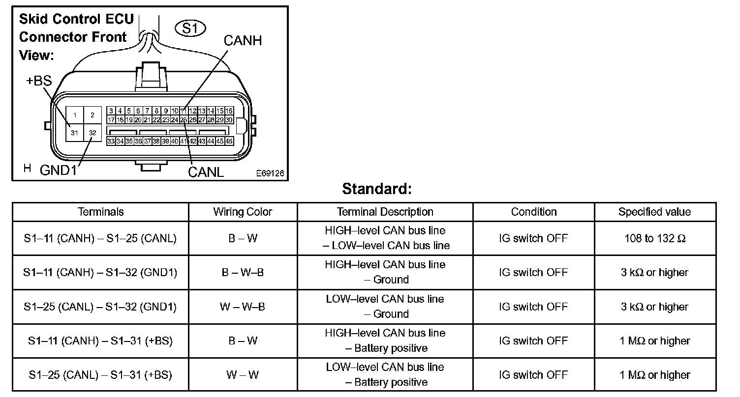 1. Disconnect the connector (S1) from the skid control ECU.