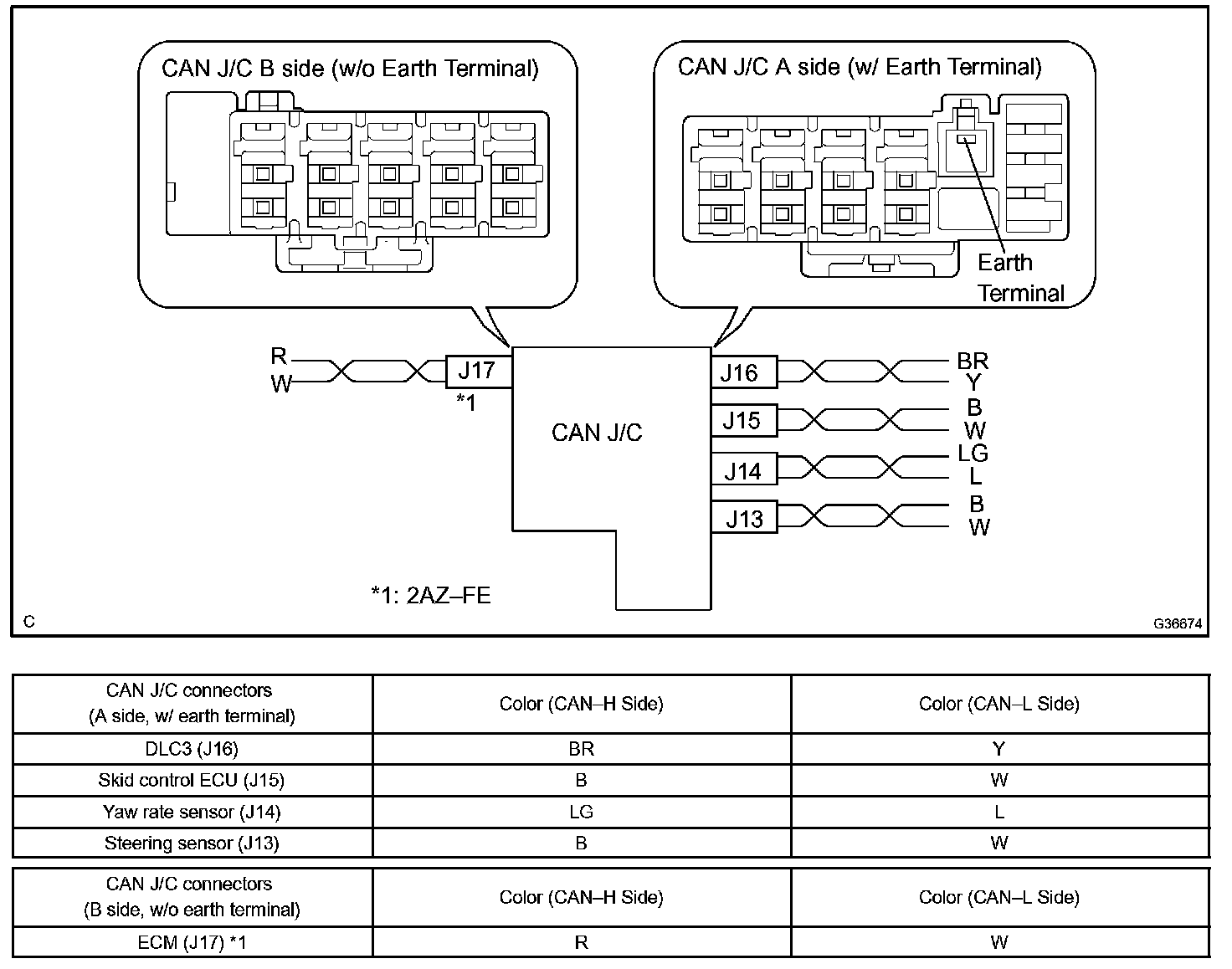 - The connectors connected to the CAN J/C can be distinguished by the colors of the bus lines and the connecting side of the connector.