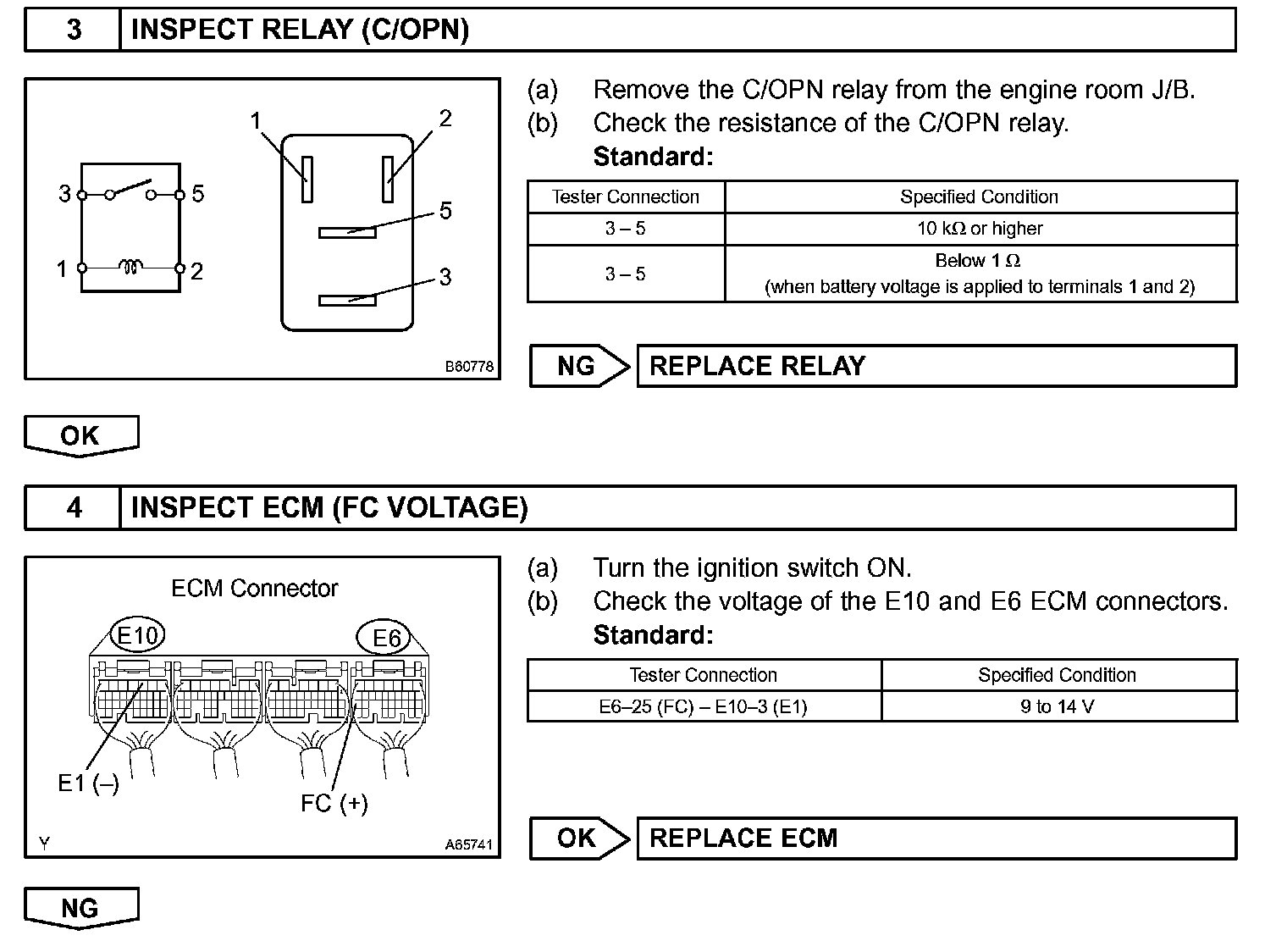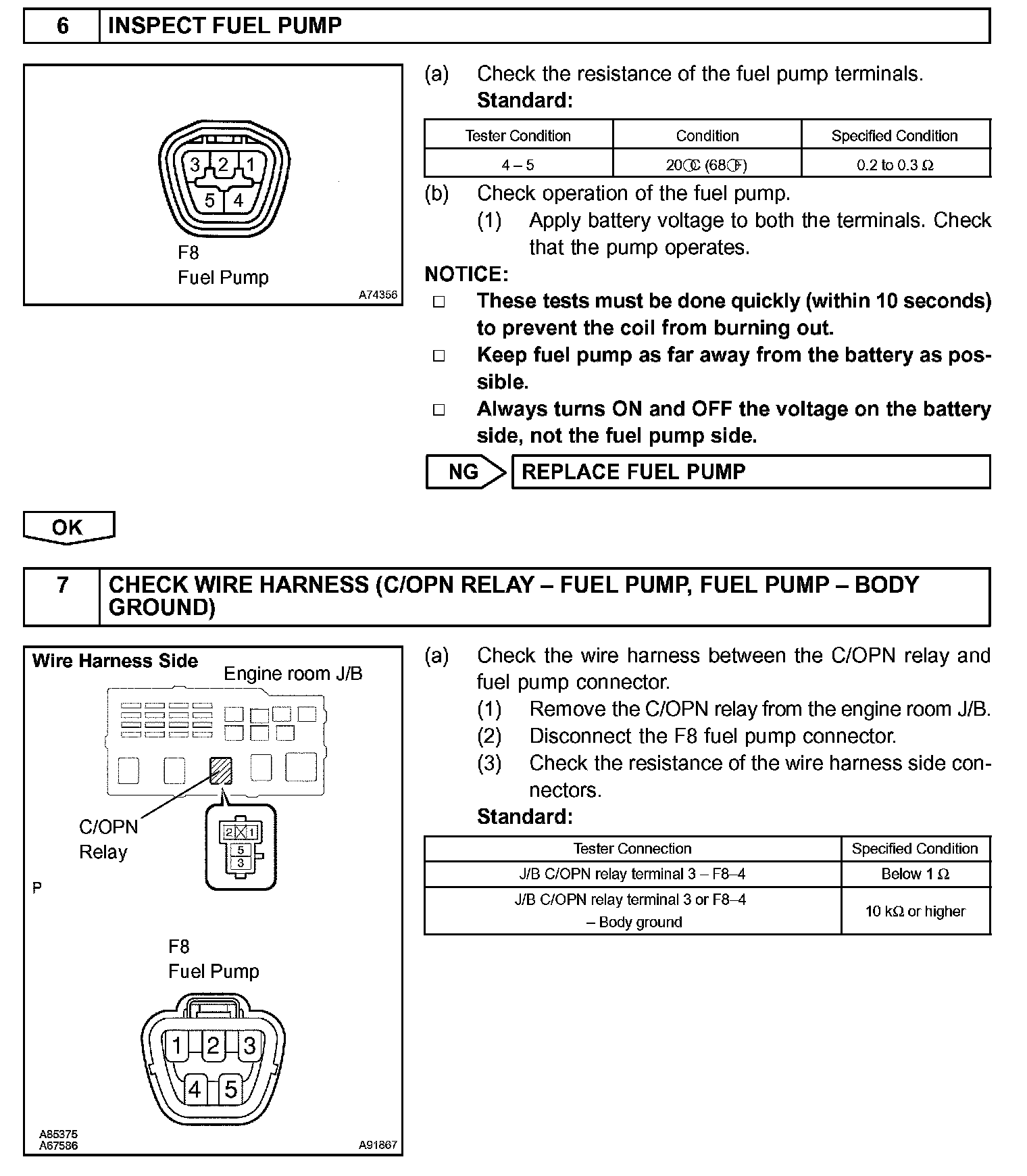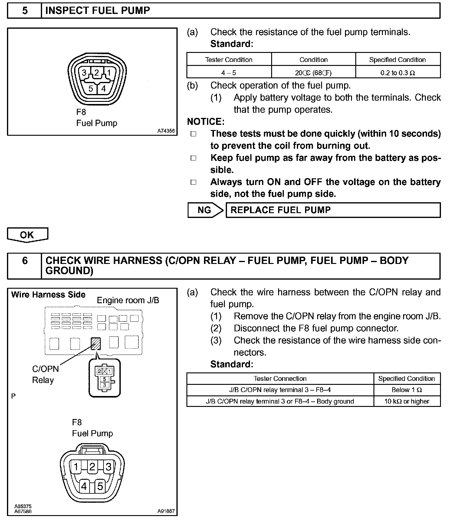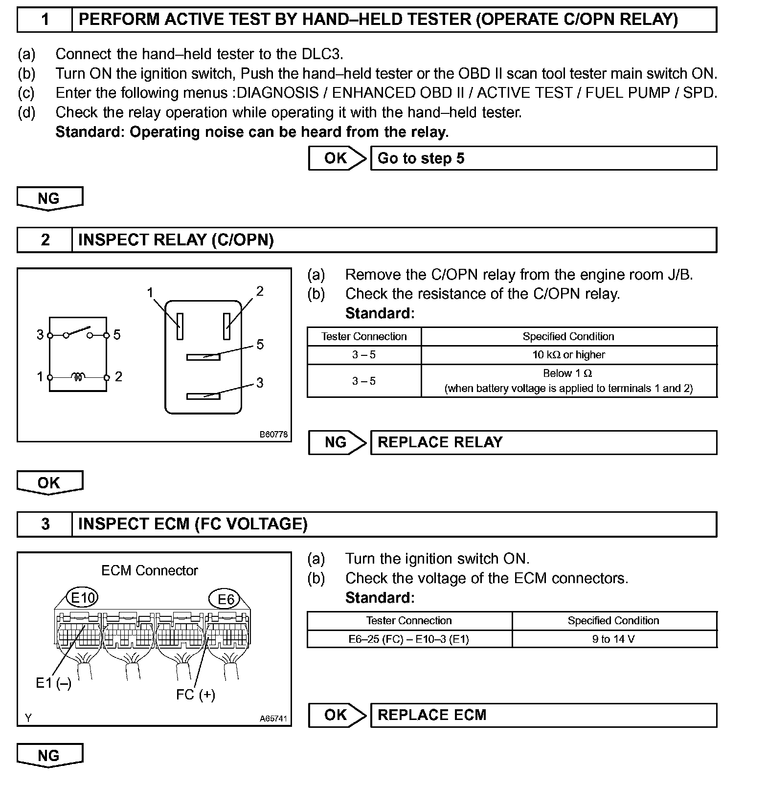 While the NE signal is generated and the engine is running, the ECM keeps Tr ON (C/OPN relay ON) and the fuel pump also keeps operating.