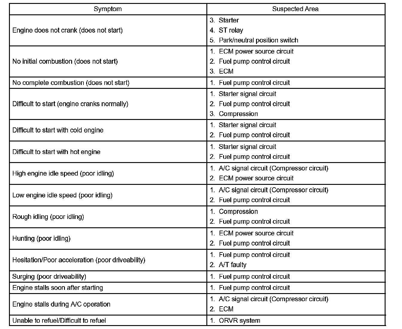 Problem Symptoms Table: