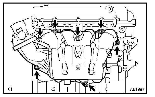 a. Install a new gasket and the intake manifold with the 5 bolts and 2 nuts.