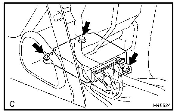 b. Remove the 3 bolts and the airbag sensor assembly center.