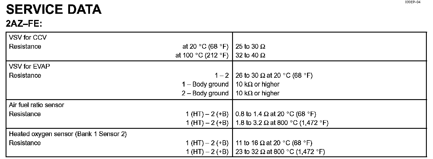 Emission Control - Service Data: