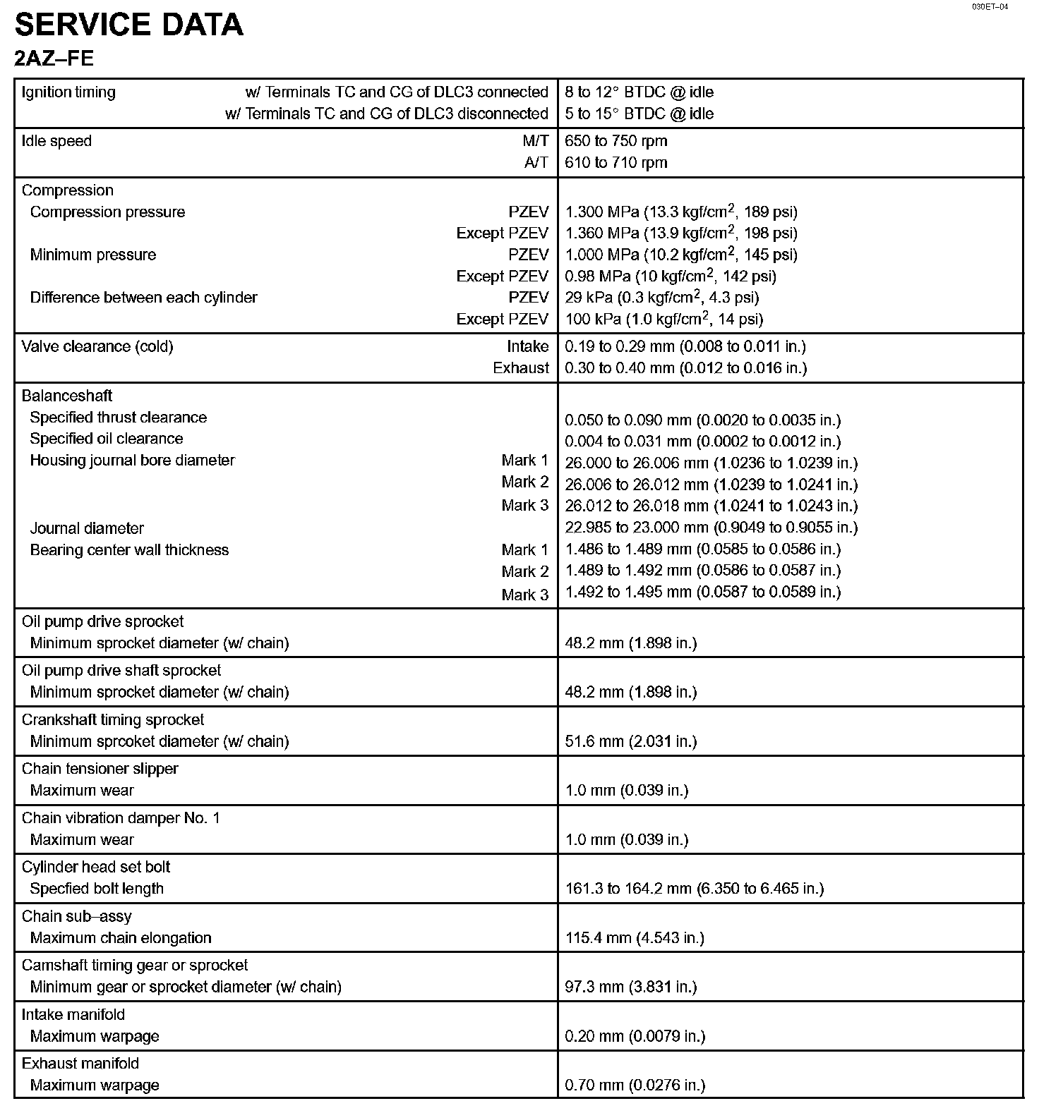 Engine Mechanical - Service Data Part 2: