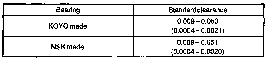 Standard clearance: 0.10 - 0.57 mm (0.0039 - 0.0224 inch)
