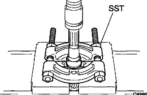 a. Using SST and a press, remove the input shaft bearing front (inner race) from the input shaft.