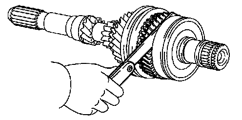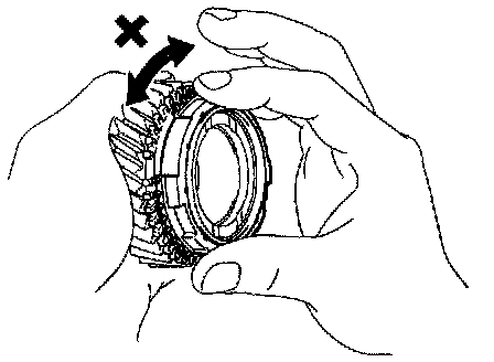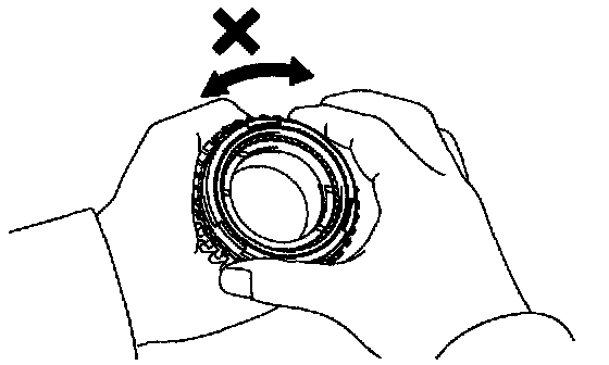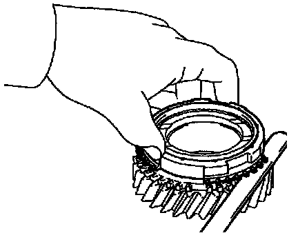 a. Coat the 3rd gear cone with gear oil. Turn the synchronizer outer, ring in one direction while pushing it to the 3rd gear cone. Check that the ring locks.