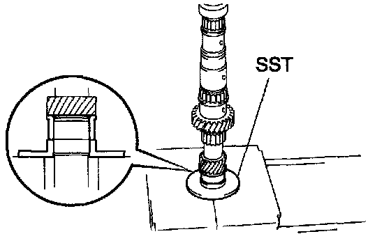 c. Using SST and a press, remove the input shaft rear bearing and 4th gear.