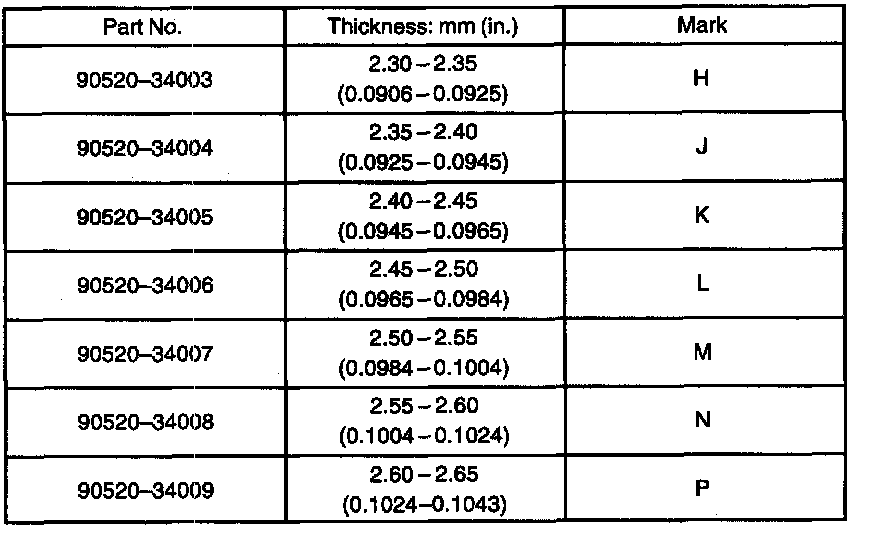 Standard clearance: 0.10 - 0.35 mm (0.0039 - 0.0138 inch)