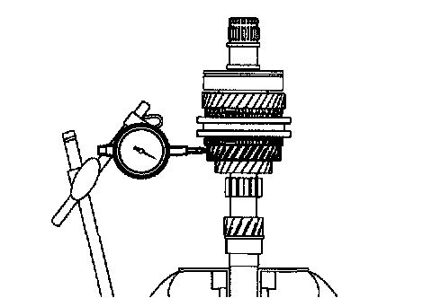 a. Using a dial indicator, measure the 3rd gear thrust clearance.