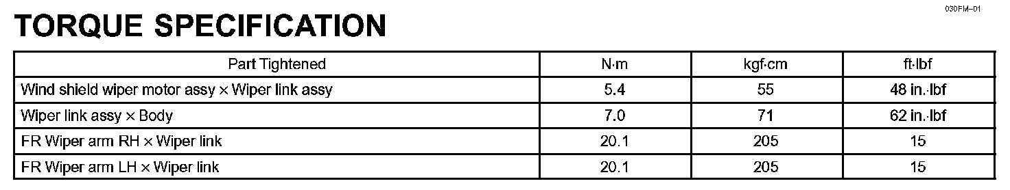 Wiper & Washer - Torque Specification: