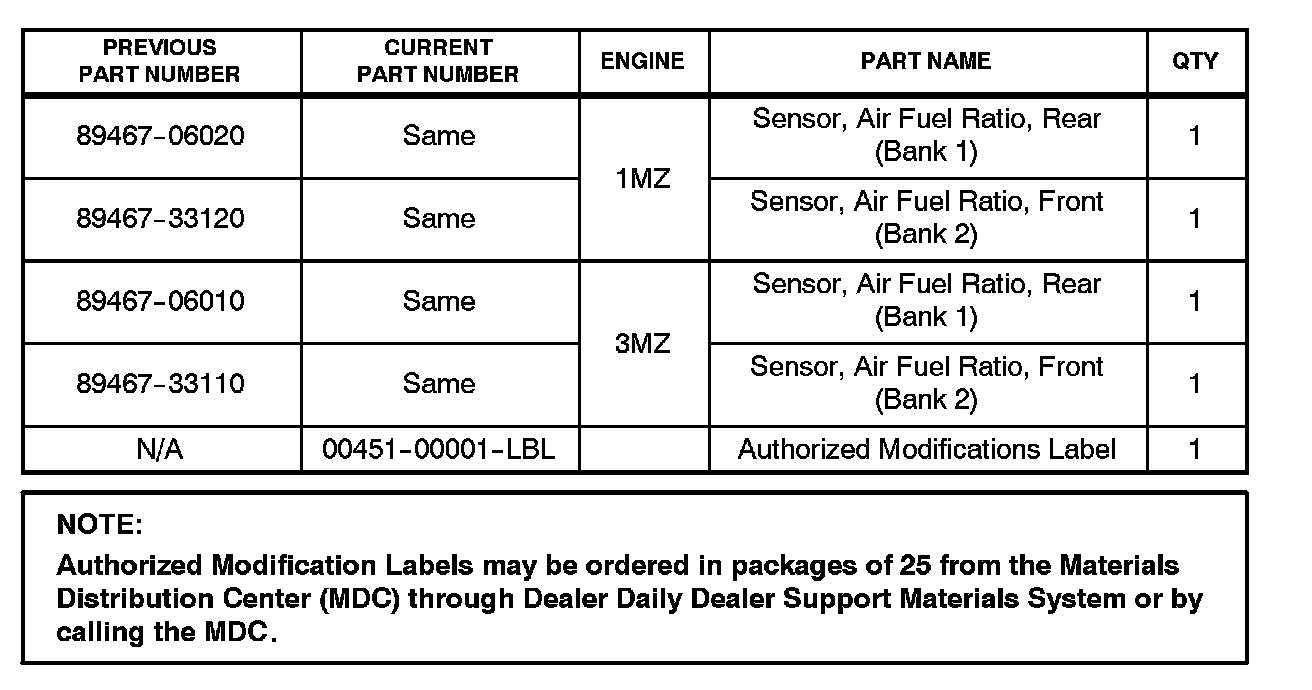 The A/F sensor manufacturing process and the Engine Control Module (ECM) (SAE term: Powertrain Control Module/PCM) logic have been modified to improve these conditions.
