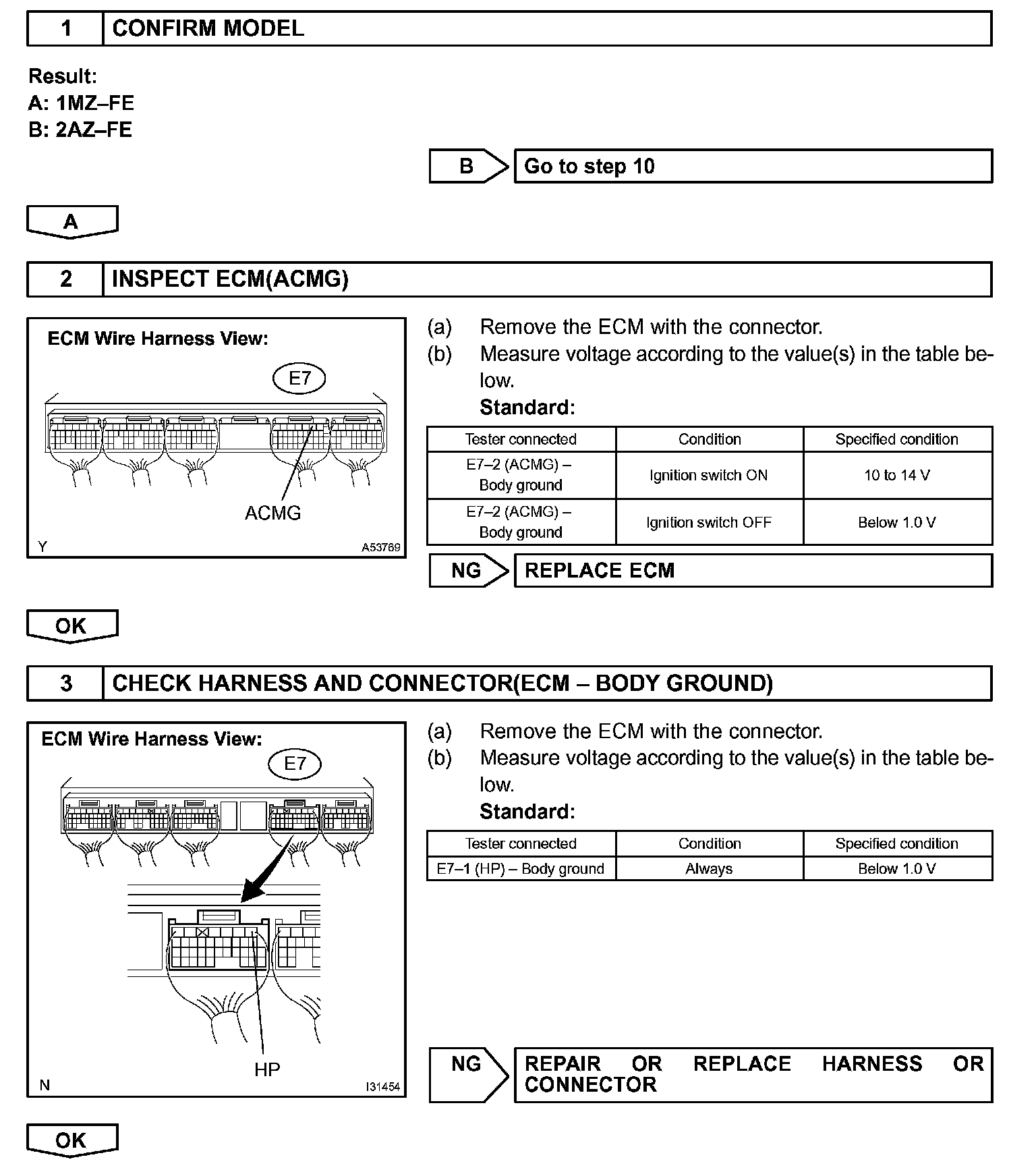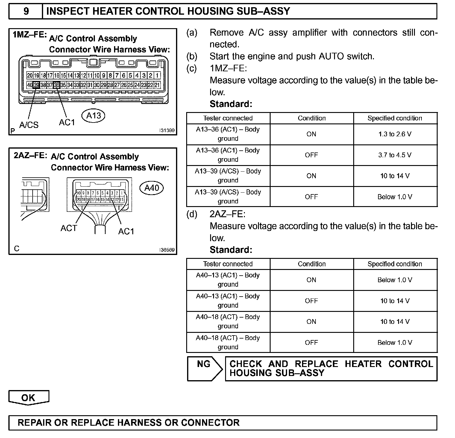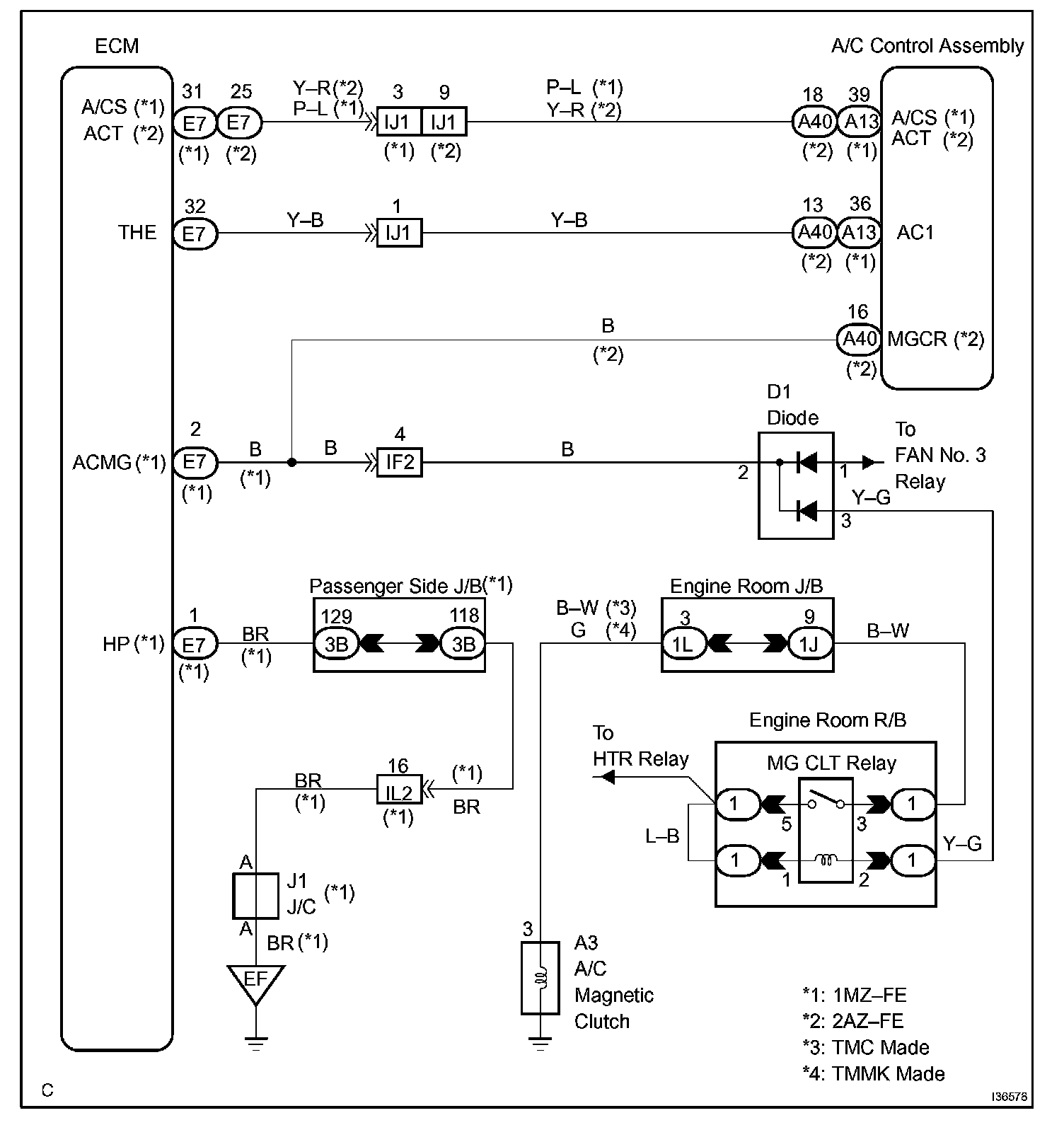 The A/C amplifier outputs the magnetic clutch ON signal from terminal AC1 to the ECM receives this signal, it sends a signal from terminal ACMG (MGCR) and switches the magnetic clutch relay ON, thus turning on the magnetic clutch.