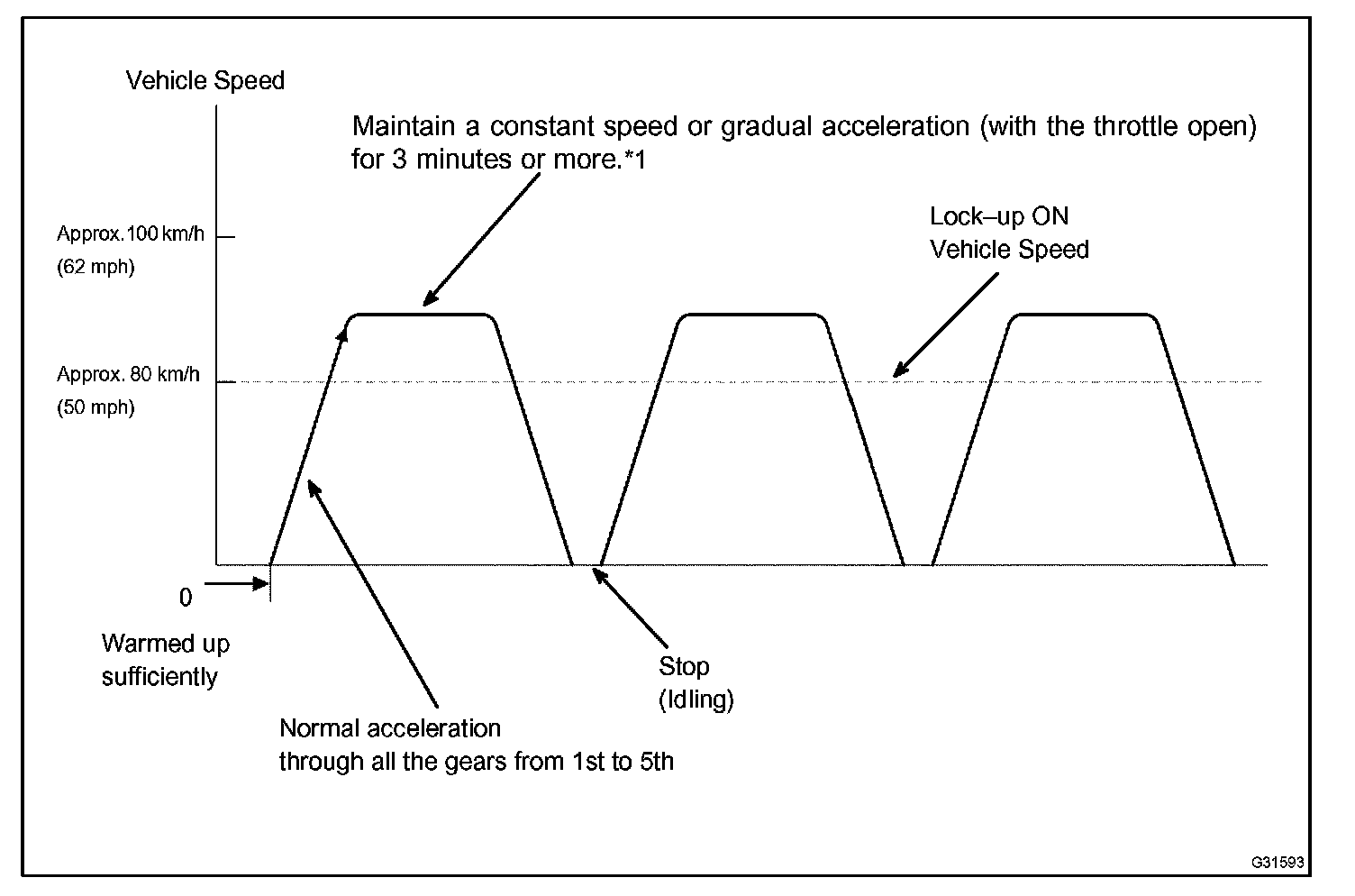 HINT: *1: Drive at such a speed in the uppermost gear, to engage lock-up. The vehicle can be driven at a speed lower than that in the diagram under the lock-up condition.