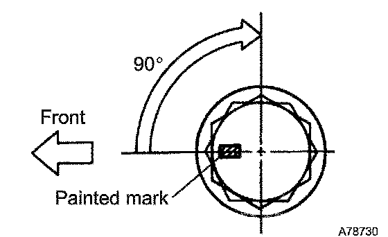 d. Mark the front side of each cylinder head bolt head with paint as shown in the illustration.