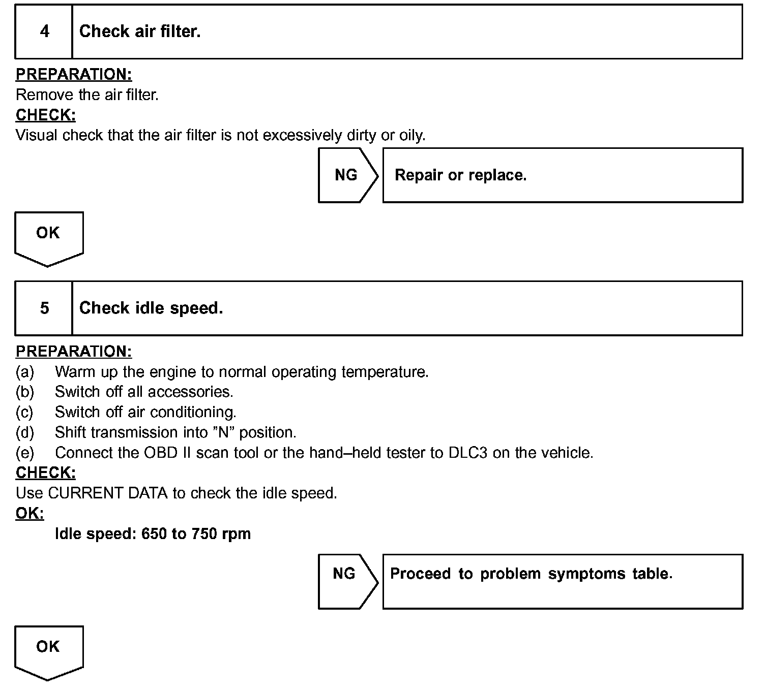 When the malfunction is not confirmed in the DTC check, troubleshooting should be carried out in all the possible circuits considered as causes of the problem. In many cases, by carrying out the basic engine check shown in the flowchart, the location causing the problem can be found quickly and efficiently. Therefore, using this check is essential in the engine troubleshooting.