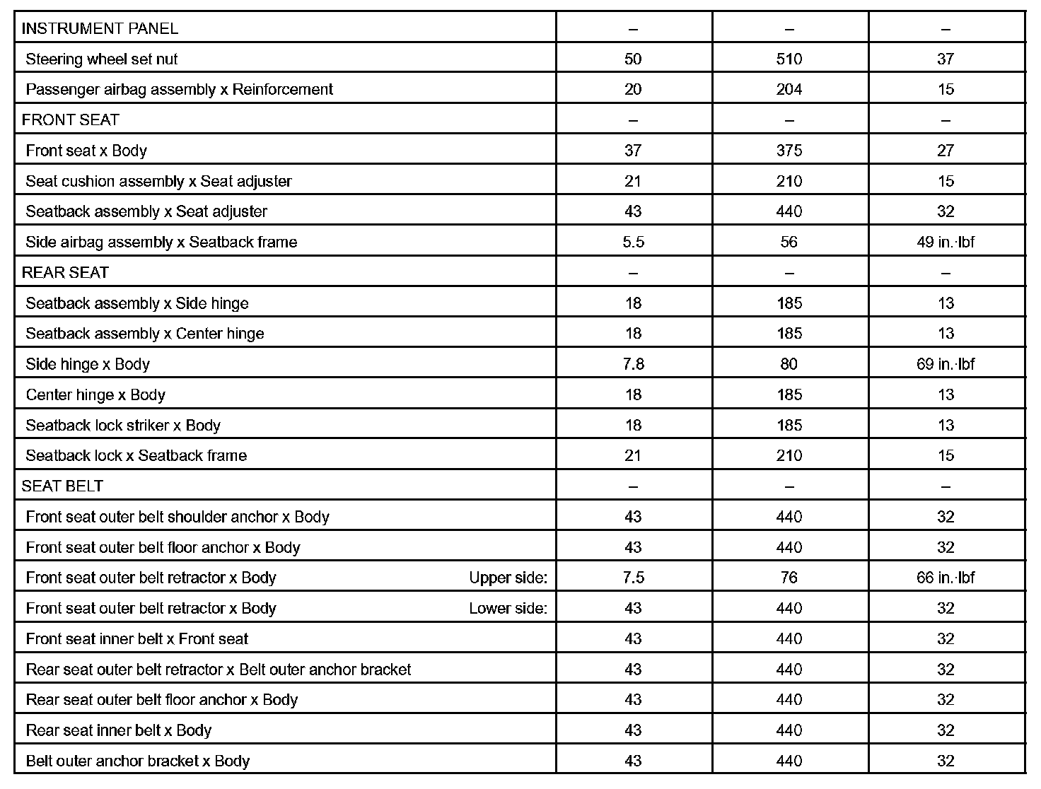 Body - Torque Specification Part 2: