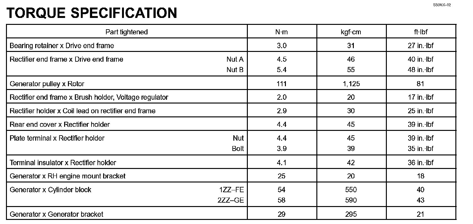 Charging - Torque Specification: