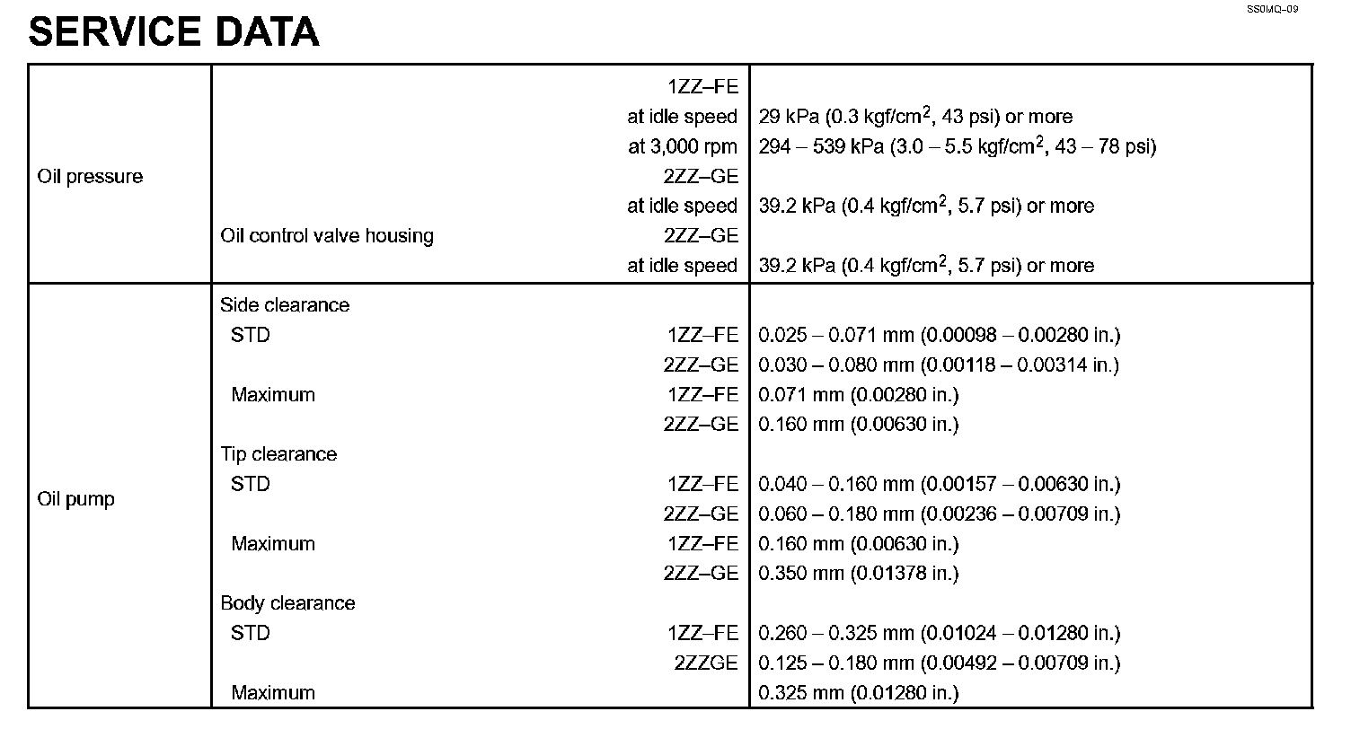 Lubrication - Service Data: