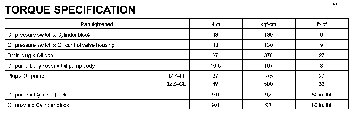 Lubrication - Torque Specification: