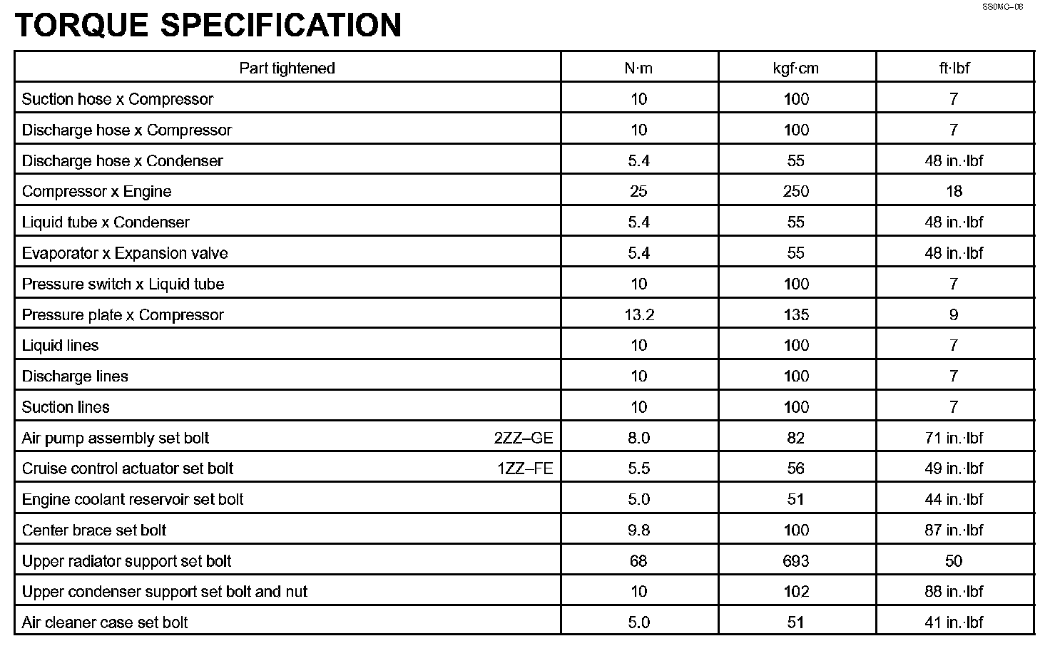 Air Conditioning - Torque Specification: