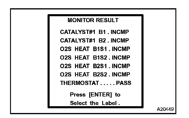 The engine control module (ECM) monitors the emissions-related components as the thermostat, catalyst converter and evaporative emissions (EVAP), and determines whether they are functioning normally or not. When finished monitoring, the ECM stores the monitor results and the test values.