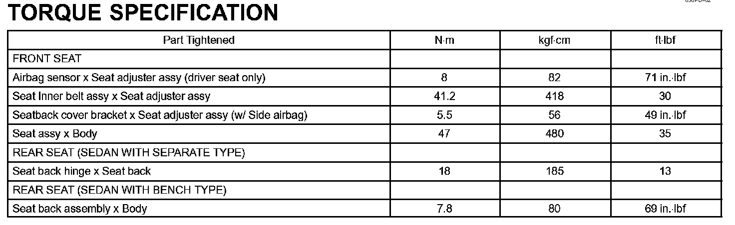 Seat - Torque Specification: