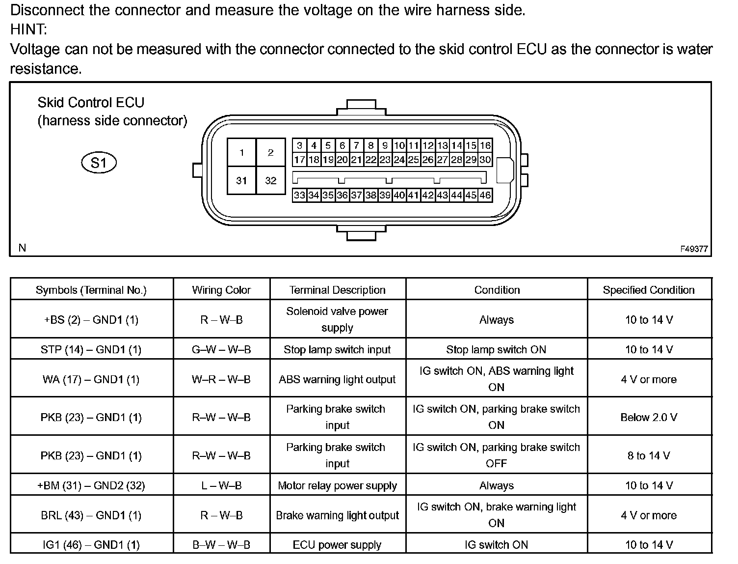 Terminals Of Control Module/Pinouts - Terminal Inspection: