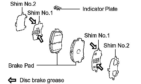 a. Apply disc brake grease to each anti-squeal shim No.1.