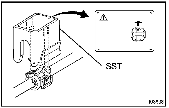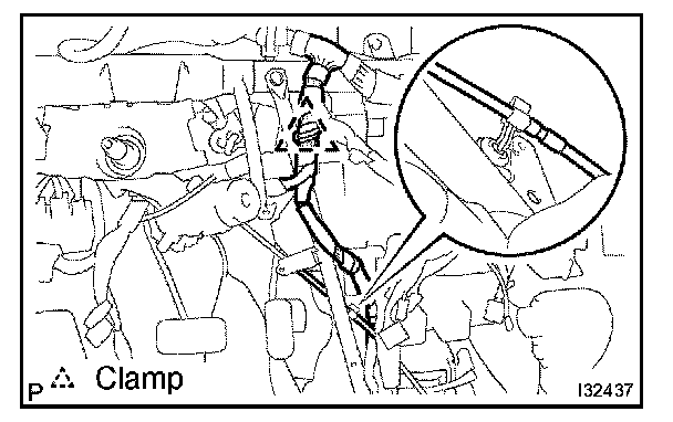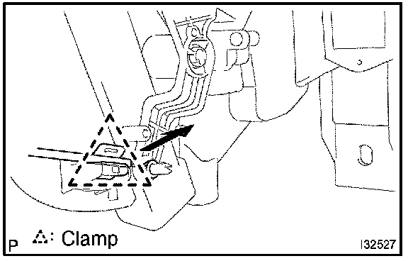 HINT: Confirm the direction of the piping clamp claw and SST using the illustration showing on the caution label.