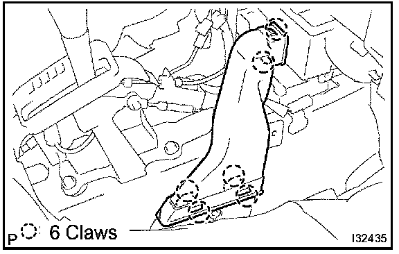 b. Release the 6 fitting claws, remove the air duct rear No.4.