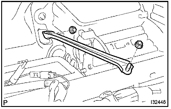 a. Remove the 2 nuts and instrument panel to cowl brace center.