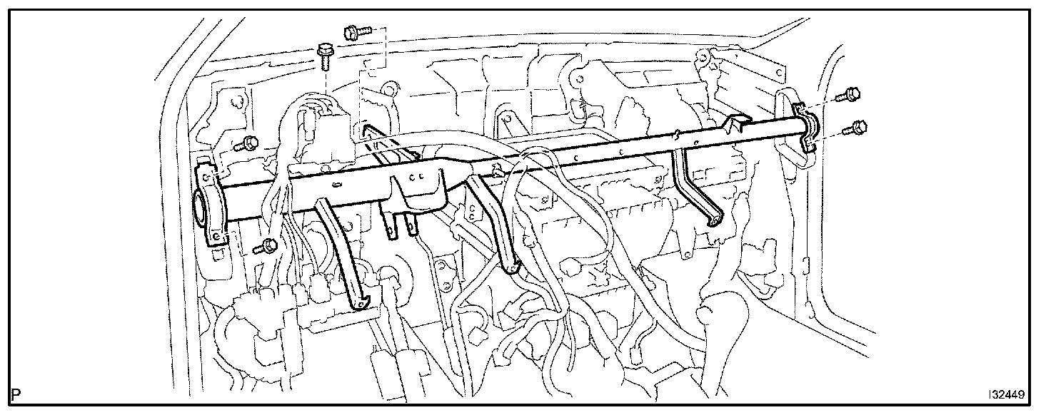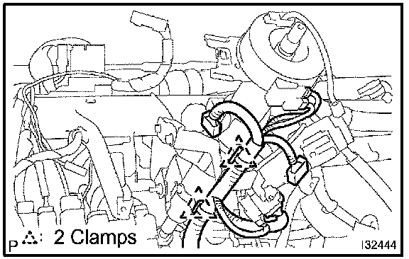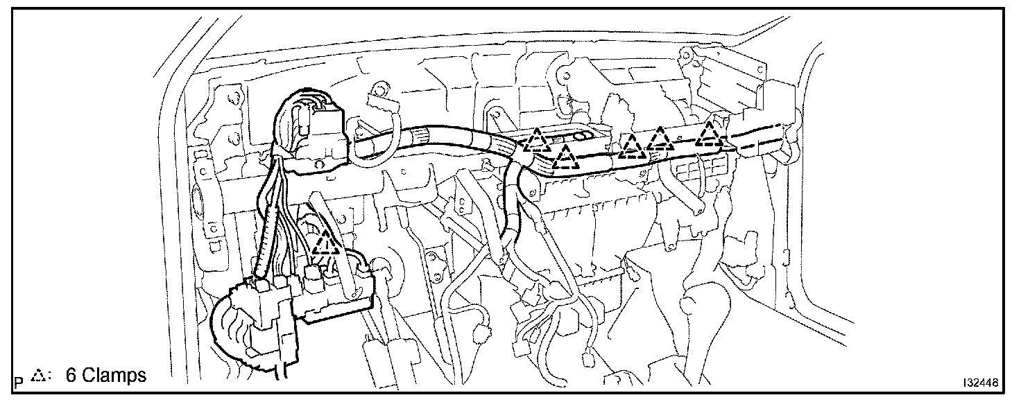 b. Disconnect the 6 clamps and wire harness.