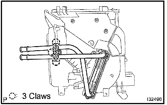 a. Release the 3 fitting claws, remove the heater piping clamp and heater radiator unit sub-assembly