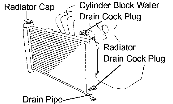 a. Loosen the radiator drain cock plug and cylinder block water drain cock plug, then drain the coolant.
