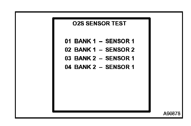 The O2S Test Result is part of the monitoring for Heated Oxygen (HO2) sensor malfunctions. The various states (Test Items) of the HO2 sensor are monitored by the ECM. The Test Item values (Test Values) can be read using a hand-held tester or OBD II scan tool.