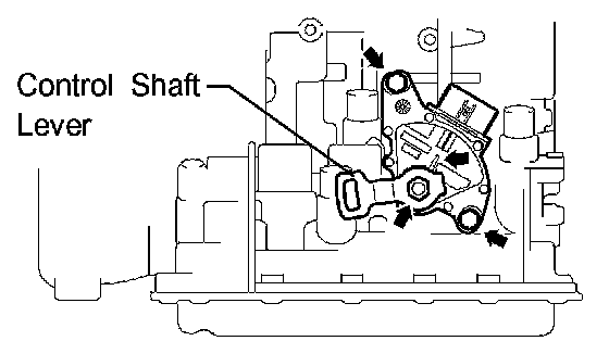 c. Pry out the lock plate and remove the manual valve shaft nut.