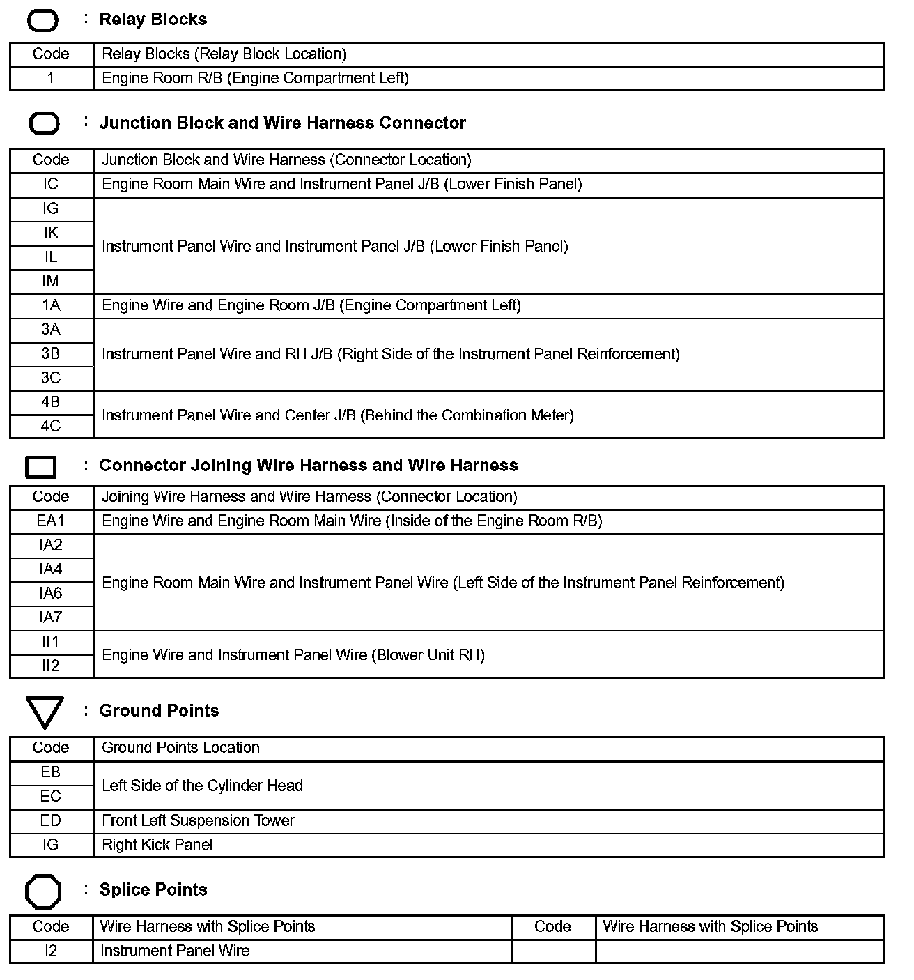Locations: The locations of components, connectors, ground points, and splices referred to within these diagrams can be found at Vehicle Locations.