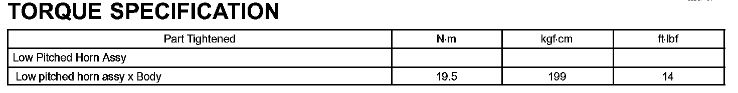 Horn - Torque Specification: