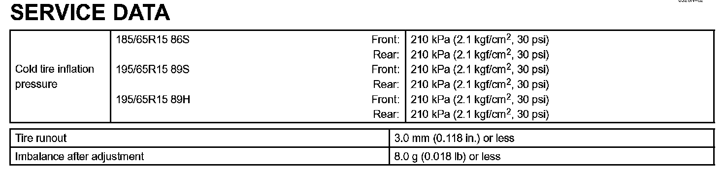 Tire & Wheel - Service Data: