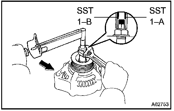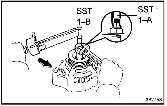a. Hold SST 1-A with a torque wrench, then tighten SST 1-B clockwise to the specified torque.
