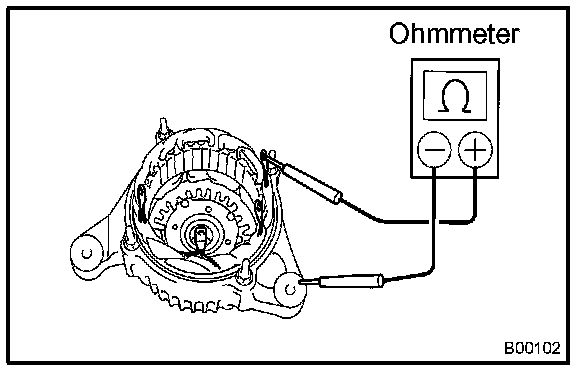 1. Using an ohmmeter, measure the resistance between the slip rings.