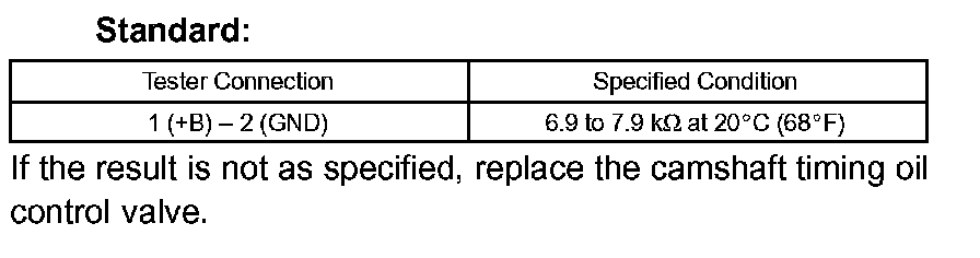 INSPECT CAMSHAFT TIMING OIL CONTROL VALVE ASSYa. Check the resistance.