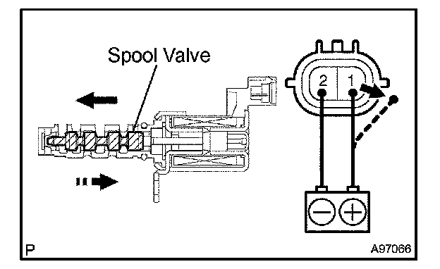 1. Apply battery voltage across the terminals, then check that the spool valve operates.