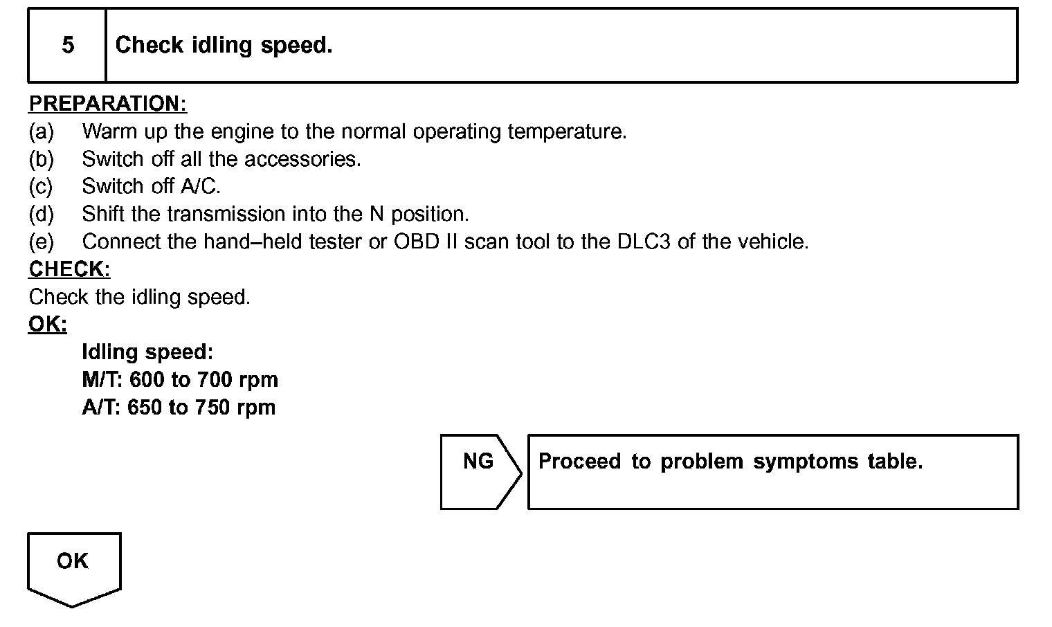 When a malfunction is not confirmed by the DTC check, troubleshooting should be carried out in all circuits considered to be possible causes of the problem. In many cases, by carrying out the basic engine check shown in the given flowchart, the location of the problem can be found quickly and efficiently. Therefore, using this check is essential when engine troubleshooting.