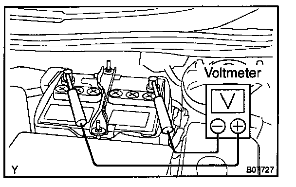 c. Measure the battery voltage between the negative (-) and positive (+) terminals of the battery.